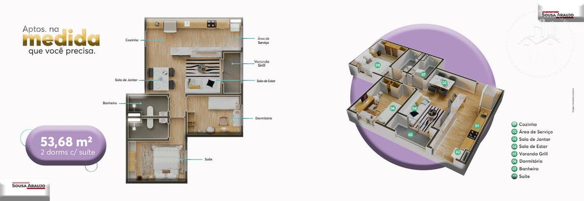 2 dormitórios (1 suíte)
