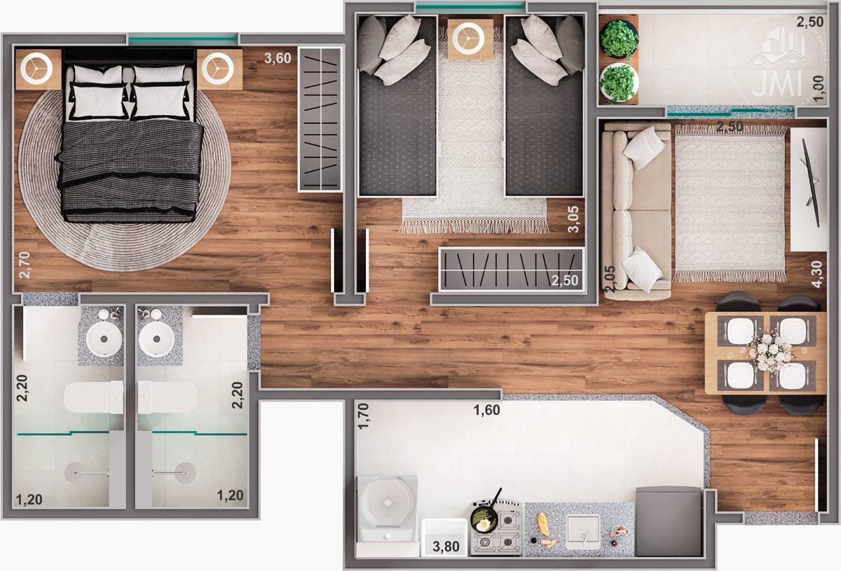 2 dormitórios (1 suíte)